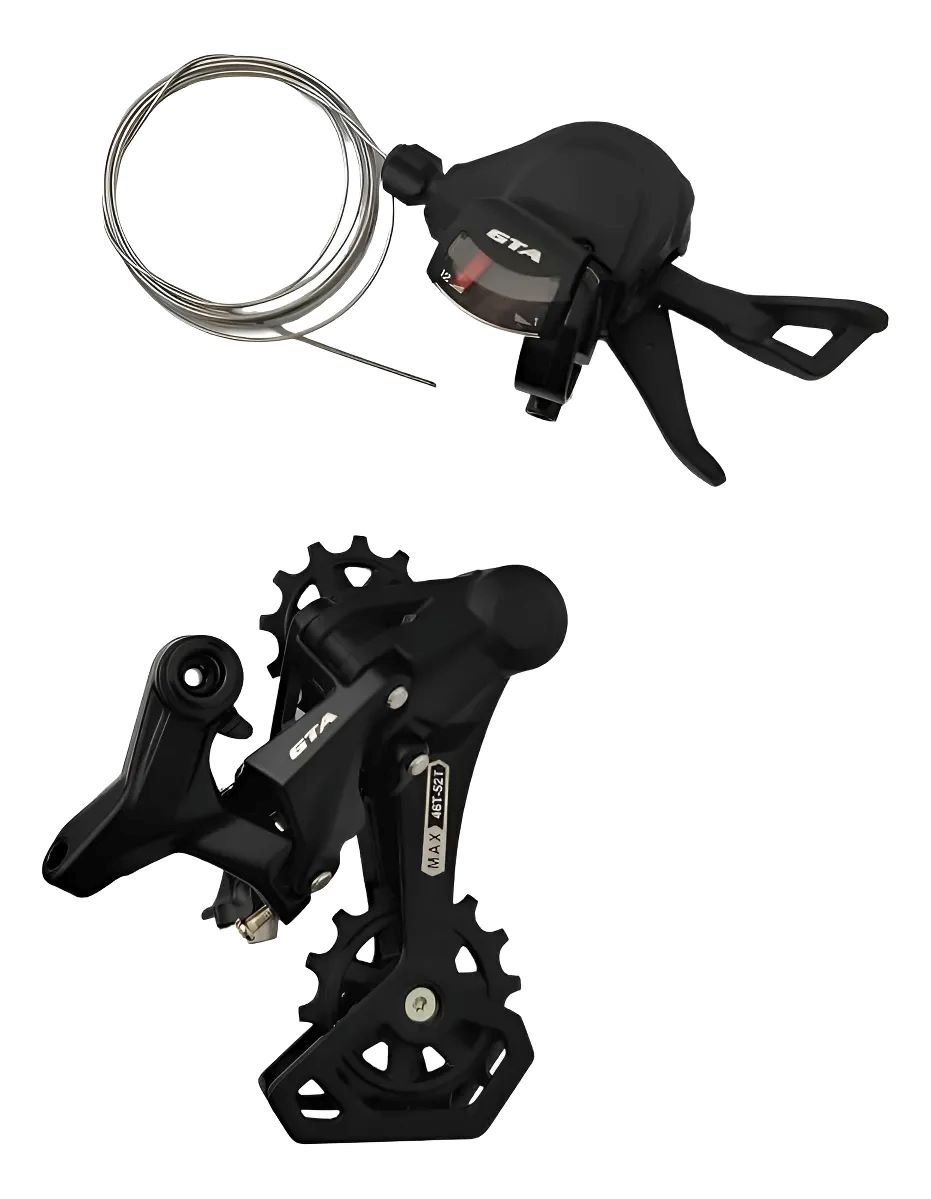 Composto pelo câmbio traseiro de 12 velocidades e alavanca (shifter), o conjunto entrega trocas suaves e rápidas, perfeitas para MTB, trilhas e uso urbano exigente.