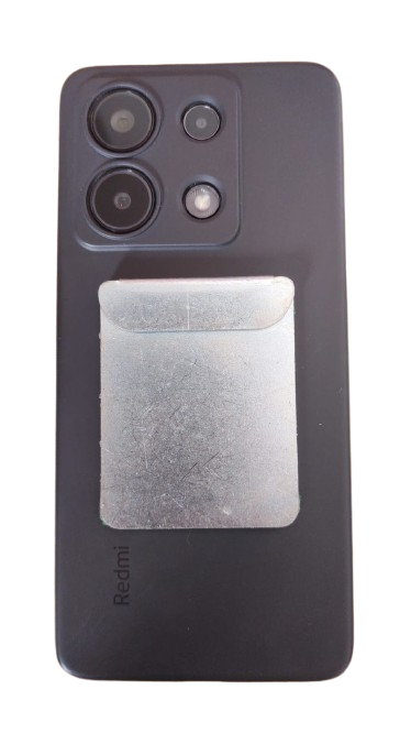 Chapa de ferro . Pode ser adaptado a qualquer superfície lisa que atrai imã, e para conseguir fixar o aparelho ao suporte, inclui chapa com dupla face. Para usar, basta colocar a chapa no verso do aparelho celular ou no objeto que deseja fixar, podendo ser colado diretamente no aparelho ou colocado na capinha do aparelho.
