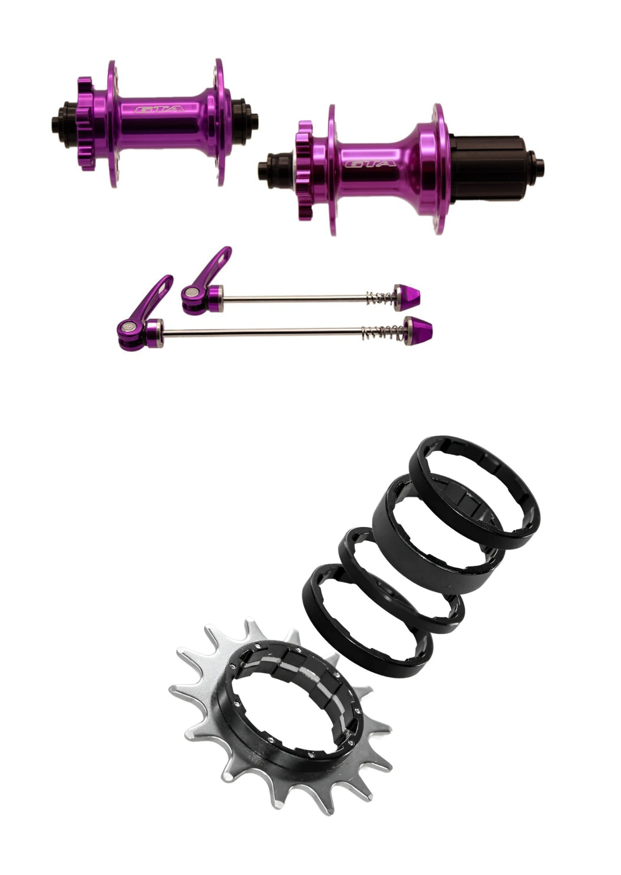 Cubo aluminio dianteiro e traseiro com rolamento roxo para cassetes de 8 a 12 velocidades com blocagem